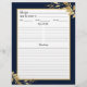 Navy Blue Gold Foliage Recipe Binder Page