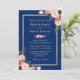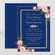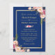 Navy Blue Gold Frame Pink Floral Wedding Invitation