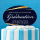 This elegant navy blue and gold graduation party cake topper features modern geometric lines above your formal text. The classy white script details your graduate school and name or other congratulations message. This dessert decoration is perfect for a 2025 college or university grad.