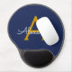 Navy Blue Gold Girly Script Monogram Name Modern Gel Mouse Pad