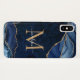 Modern Glam Navy Blue Gold Glitter Sparkle Agate Geode Elegant Feminine Monogram Script Name iPhone X Case