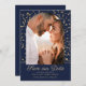 Beautiful navy blue wedding Save the Date stationery with gold glitter and your photo framed inside an elegant arch/dome frame. Personalize with your names, wedding date and location, and any other information, such as wedding website, that you may want to share with friends and family.