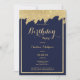 Navy blue gold glitter brushstrokes Birthday Party Invitation