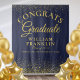An elegant graduation photo booth backdrop featuring your grad's details set in chic typography on a navy blue and gold glitter background. Designed by Thisisnotme©