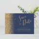Navy Blue Gold Glitter Script Save the Date Invitation