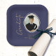 Navy Blue Gold Graduation Script Minimal Photo Paper Plates