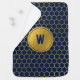 Navy Blue & Gold Hexagon Pattern Monogram Initial Baby Blanket