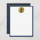 Navy Blue & Gold Hexagon Pattern Monogram Initial Note Card