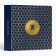Navy Blue Gold Hexagon Pattern Monogrammed Initial 3 Ring Binder