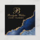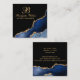 A unique version of an abstract navy blue black and gold foil agate geode event and wedding planner business card featuring an elegant script script signature monogram. Unique square format, stylish and chic.