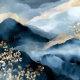 Navy Blue Gold Modern Abstract Landscape Wall Art