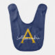 Navy Blue Gold Modern Script Girly Monogram Name Baby Bib