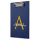 Navy Blue Gold Modern Script Girly Monogram Name Clipboard