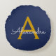 Navy Blue Gold Modern Script Girly Monogram Name Round Pillow