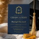 Navy Blue Gold Monogram Crest Graduation Party Foil Invitation