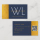 Navy Blue Gold Monogram Modern Minimalist QR Code Business Card