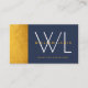 A modern monogram design with navy blue background color and gold accents. A minimalist personalized initial QR code business card for both men and women who have a flare for style. A simple and professional way to introduce your business. Personalize your details to create your own unique business card.
