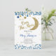 Plain white envelopes are included with paper invitations and will come to fit the invitation size you select. If you don’t need the envelopes, you may choose to not receive them by selecting the dropdown below "Envelopes" and choosing "None." If you’d like to have a design on your envelopes, you can browse all of these available envelopes to find the design that complements your Navy Blue Gold Moon Baby Shower Invitation.