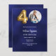 A modern, minimalist photo invitation for a 40th birthday party. A navy blue, uneven colored background. Personalize and add a photo and party details.