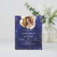 A modern, stylish and glamorous invitation for a 21 (or any age) birthday party. A navy blue background, decorated with blue and faux gold glitter sparkles and golden balloons. The blue color is uneven. Personalize and add your name, photo and party details. A ballon style photo frame.