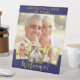 Create your own unique photo collage. Use four, 4 of your favorite photo. Personalize and add a name and age. A navy blue colored background, faux gold frames and golden text.