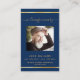 A navy blue background, a faux gold frame and space for your photo. Personalize and add name, dates and your text.