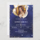 A modern, stylish and glamorous invitation for a 21 (or any age) birthday party. A navy blue background, decorated with blue and faux gold glitter sparkles and golden balloons. The blue color is uneven. Personalize and add your name, photo and party details. A ballon style photo frame.