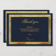 A classic navy blue background, decorated with faux gold frames. Large hand lettered script and the text: Thank You. Personalize and add your photo, thank you note and name.
