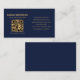 Navy Blue Gold QR Code Minimalist Professional Business Card