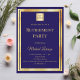 Celebrate the special milestone with this elegant retirement party invitation. Featuring a rich navy blue, dark blue background this design is highlighted by a faux gold frame. The golden-colored lettering adds a touch of sophistication, making it perfect for the occasion. Personalize it by adding your business logo, the retiree's name and all your party details to create a truly unique invitation.