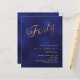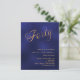A modern, stylish invitation for a 40th birthday party. A navy blue, uneven colored background and the word Forty written with elegant large script letters in faux gold. Personalize and add a name and party details.