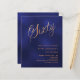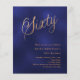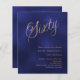 A modern, stylish invitation for a 60th birthday party. A navy blue, uneven colored background and the word Sixty written with elegant large script letters in faux gold. Personalize and add a name and party details.