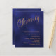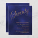 A modern, stylish invitation for a 70th birthday party. A navy blue, uneven colored background and the word Seventy written with elegant large script letters in faux gold. Personalize and add a name and party details.