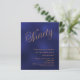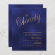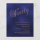 A modern, stylish invitation for a 90th birthday party. A navy blue, uneven colored background and the word Ninety written with elegant large script letters in faux gold. Personalize and add a name and party details.