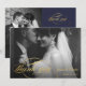 Navy Blue & Gold Script Wedding Photo Thank You Card