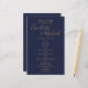 An elegant gold and navy blue wedding program featuring signature style names. Designed by Thisisnotme©
