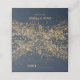 Elegant navy blue with gold string lights and bokeh wedding escort card.