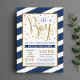 Navy Blue Gold Stripes Boy Baby Shower Invitations