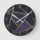 Navy Blue Gold Triangles Geometric Elegant Classy Round Clock