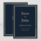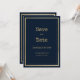 Navy blue gold typewriter font Save the Date Invitation