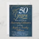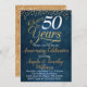 Navy Blue Gold Wedding Anniversary Invitation