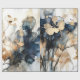 This beautiful wrapping paper blends deep navy blue tones with elegant gold accents, creating a sophisticated backdrop for delicate watercolor flowers in soft, subtle hues. The graceful florals, with their gentle brushstroke details, add a touch of nature's beauty to this luxurious design.