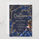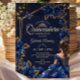 Navy Blue Golden Tiara Roses Quinceañera Invitation