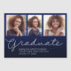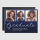 Graduation 3 photo announcement magnet in a navy blue ombre' for high school or college graduates. Personalized with your photos, name, school name, and graduation year.