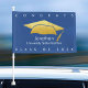Announce to the world that your favorite grad has reached their milestone. Everyone who sees you on the road will not be able to miss this stunning, simple, modern, personalized car flag. Bold, graphic, white typography and a faux gold foil cap icon overlay a navy blue background. Personalize the custom text with your graduate’s name, mascot or school name, and class year. Wave high and proud while sharing cherished memories of their special occasion!
