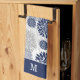 Navy Blue Gray Flower Pattern Monogram Kitchen Towel