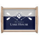Navy Blue Gray Monogram Paddle Lake House Serving Tray