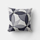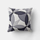 5 star quality decor pillow with unique geo-abstract design in eye-catching, navy blue, gray and white.