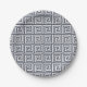 Custom designed paper plates with a navy blue Greek key pattern. Add text and images by clicking the "Customize It" button below the product image.