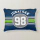 Navy blue Green Auto Racing Stripes Name Number Accent Pillow